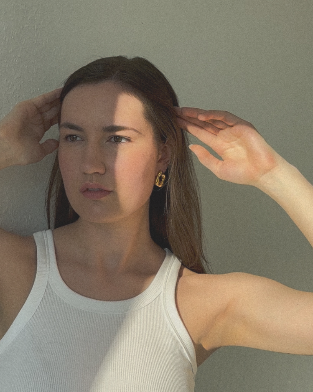 JADE ist Ausdruck von Stärke und Weichheit zugleich. Die unregelmäßig geformten, quadratisch wirkenden Ohrstecker mit organischer Öffnung erinnern an fließendes Metall – kraftvoll, skulptural, modern.