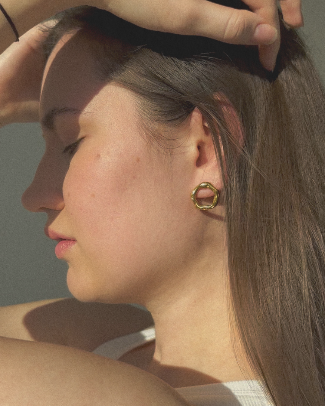 LUNA ist inspiriert von fließenden Linien, Wasseroberflächen und der leisen Kraft des Mondes. Die kreisförmigen Ohrstecker mit unregelmäßigem, leicht gewelltem Rand wirken schlicht und doch organisch.