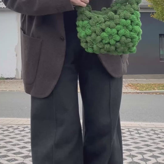 The Emerald Bloom Bag is a timeless, structured statement piece, hand-crocheted exclusively for you. It's more than just an accessory; it's a wearable work of art that reflects the calm and patience of its creation.